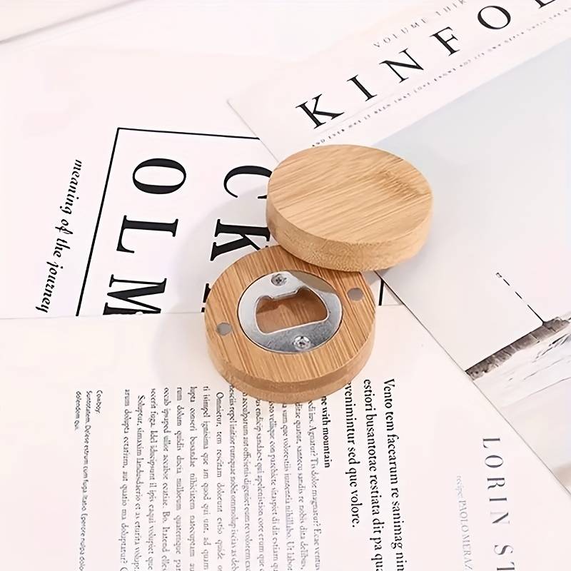 Stevige houten flesopener met magnetische achterzijde zodat je hem bv tegen de koelkast kan hangen.