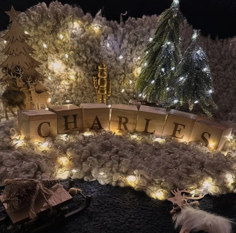 duid het aantal blokken aan dat je wilt en vul de letters of naam in in het tekstveld. Standaard gebruiken we gewone drukletters. Als je een specifiek lettertype wilt, mag dit ook in het tekstveld ingevuld worden.