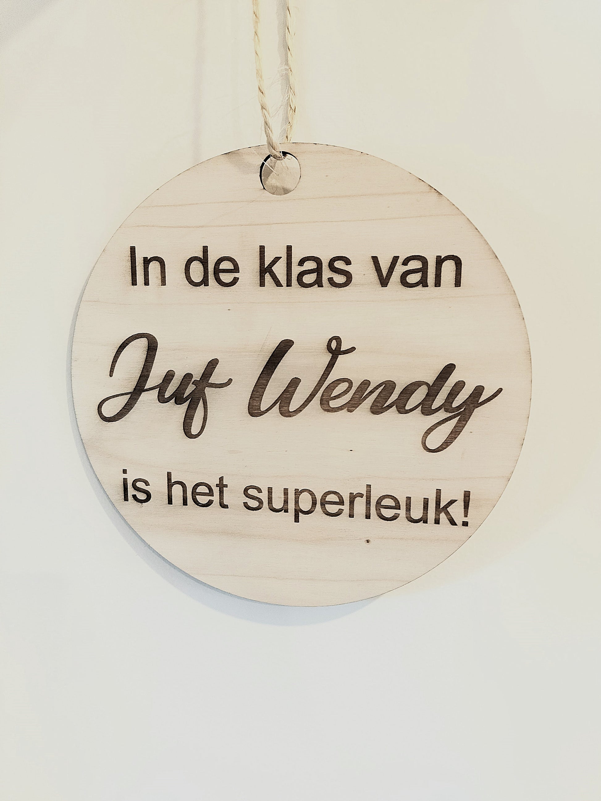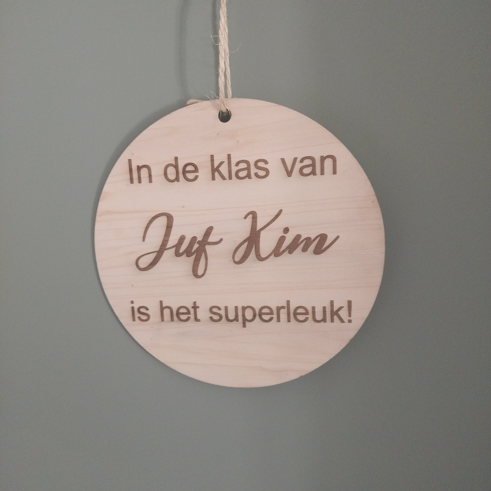 Prachtige gepersonaliseerde houten bord om de juf/meester te bedanken.