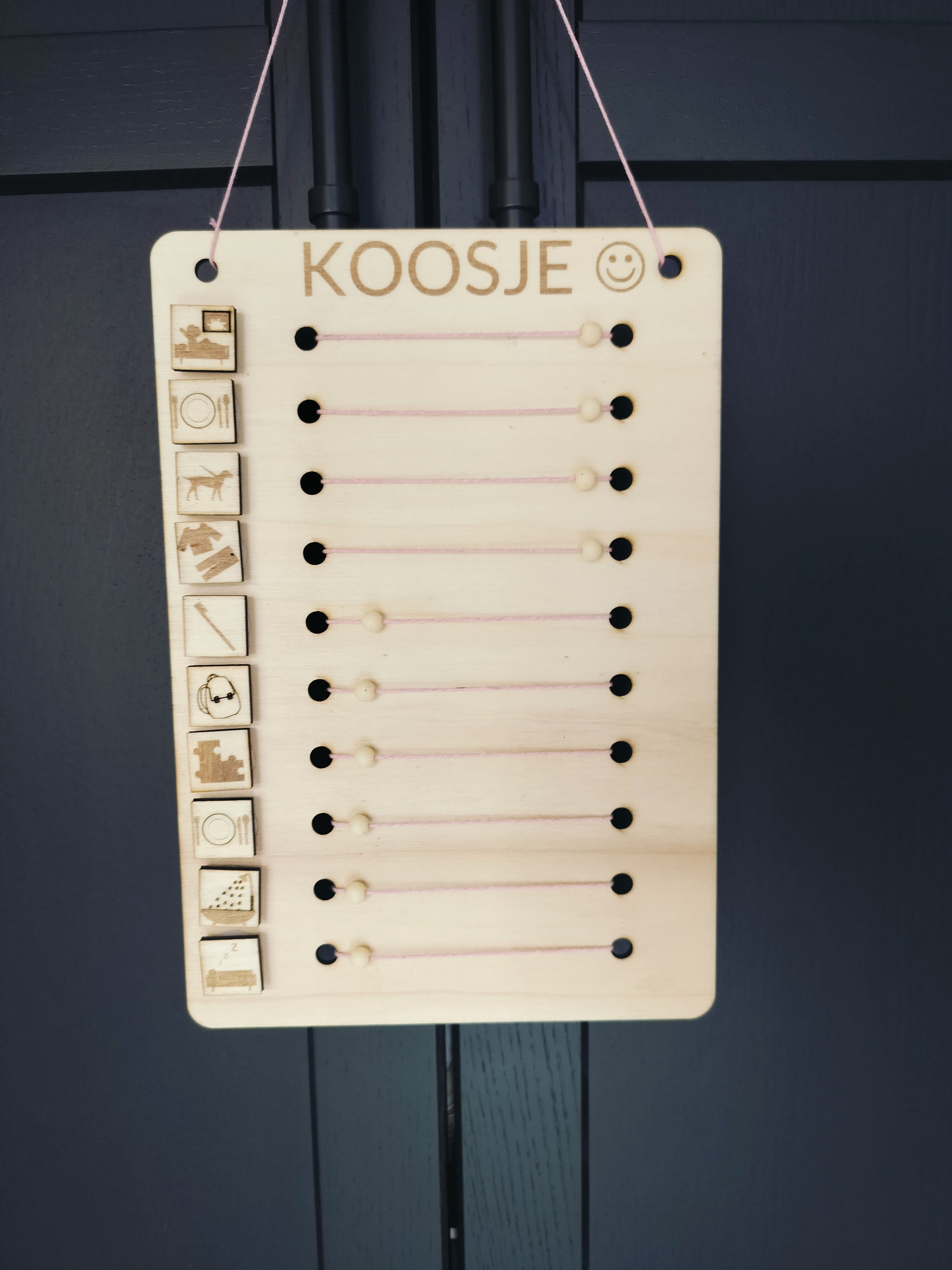 Breng rust en duidelijkheid in de dag met onze stijlvolle houten dagplanner. Deze planner is ontworpen met het oog op jonge kinderen en gezinnen die gebaat zijn bij een visuele dagindeling. De dagplanner bevat pictogrammen met velcro, die je volledig kunt personaliseren volgens jullie eigen ritme en routines.