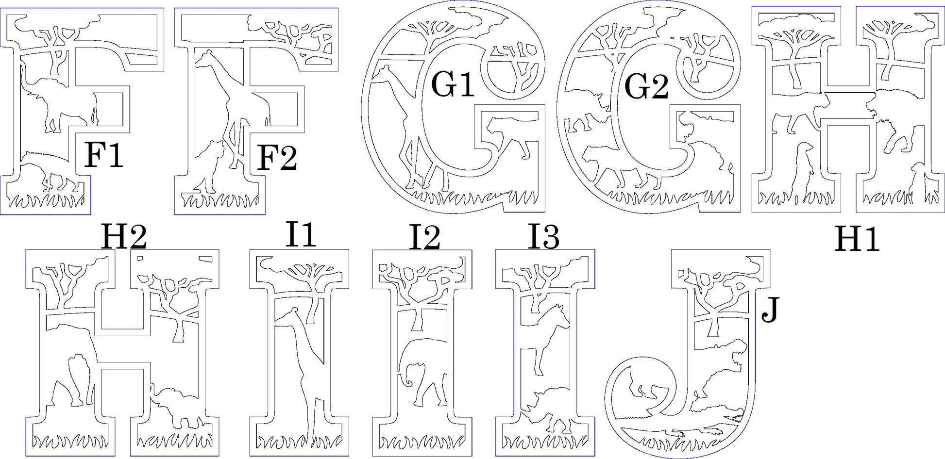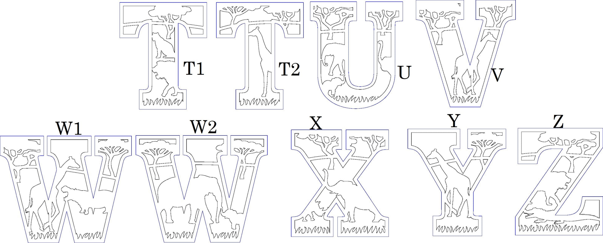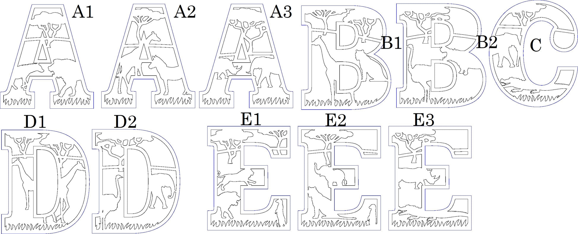 Elke letter heeft zijn eigen unieke design met leuke safaridieren
