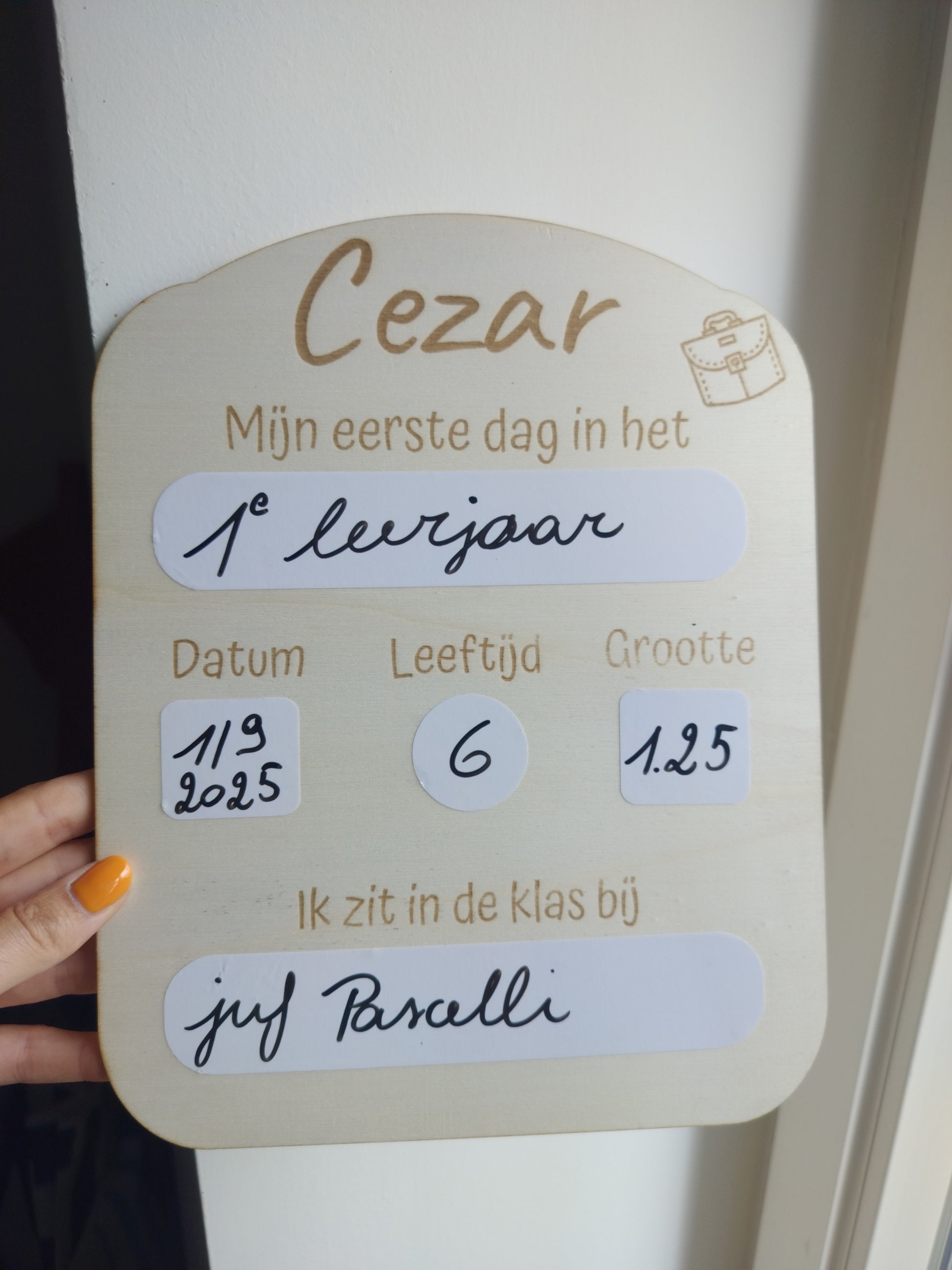 Leg die bijzondere eerste schooldag vast met dit prachtige houten bord!