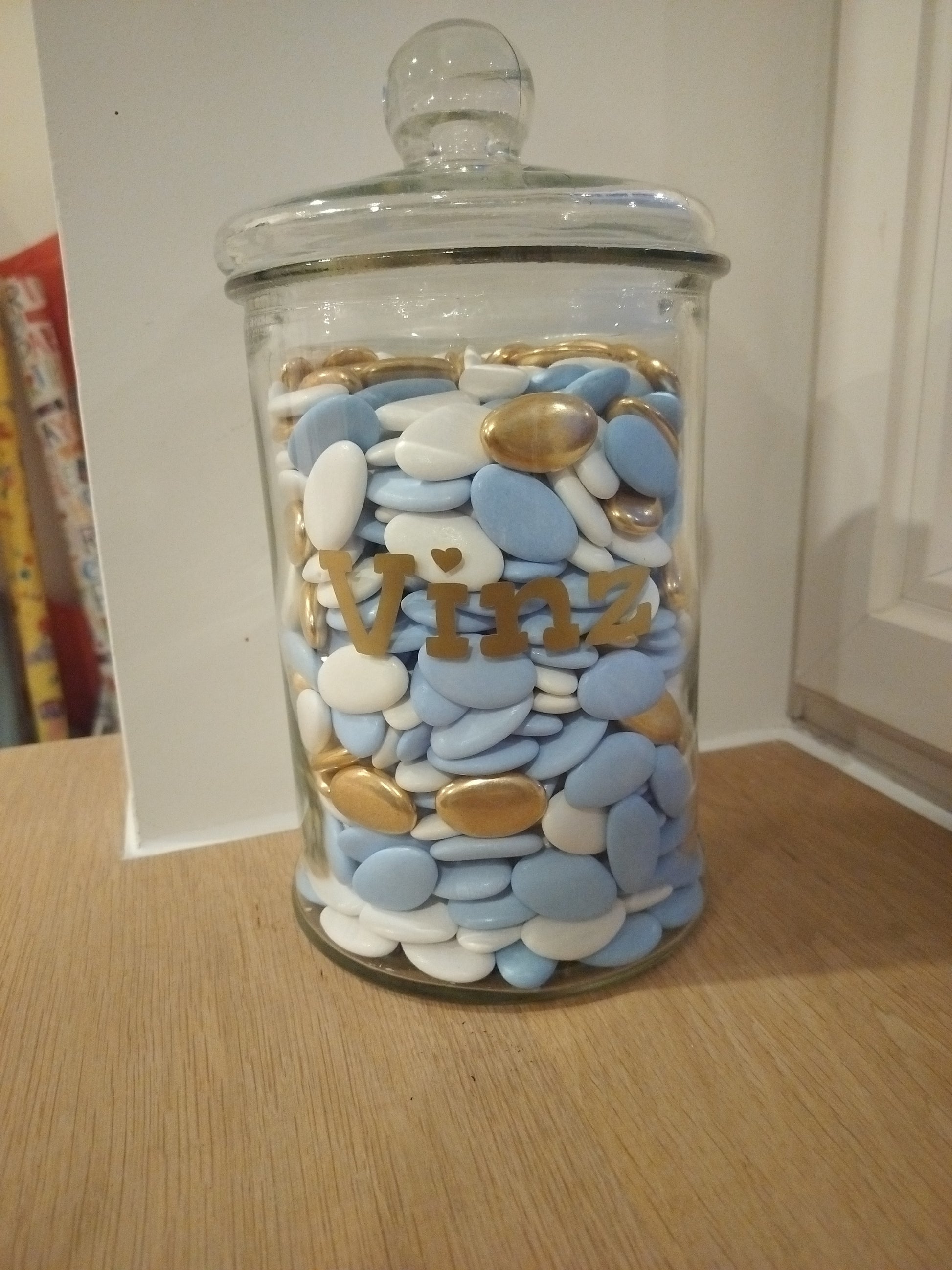 - Een medium sticker van Max 12 cm breed is mooi om je doopsuiker te personaliseren.
